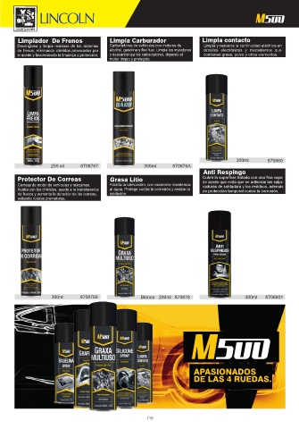 de frenos, eliminando chirridos provocados por alcohol, gasolina y flex fuel. Limpia los inyectores circuitos electrónicos y mecanismos que