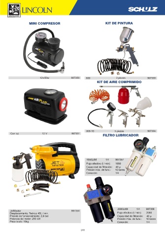 MINI COMPRESOR KIT DE PINTURA 12v/50w 987350 809 3 piezas 987355 KIT DE AIRE COMPRIMIDO 809-10 5 piezas 987356 Con luz 12 V 987351 FILTRO LUBRICADOR 987354 249
