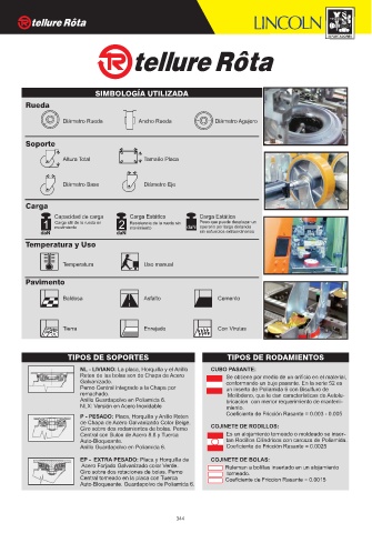 SIMBOLOGÍA UTILIZADA Rueda Soporte Carga Temperatura y Uso Pavimento TIPOS DE SOPORTES TIPOS DE RODAMIENTOS 344