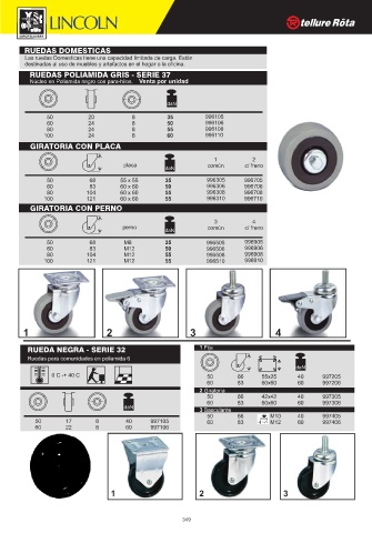 RUEDAS DOMESTICAS RUEDAS POLIAMIDA GRIS - SERIE 37 GIRATORIA CON PLACA GIRATORIA CON PERNO RUEDA NEGRA - SERIE 32 349