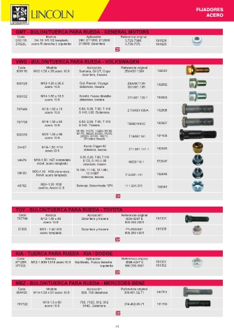 GMT - BULON/TUERCA PARA RUEDA - GENERAL MOTORS 191624 191625 VWG - BULON/TUERCA PARA RUEDA - VOLKSWAGEN TOY - BULON/TUERCA PARA RUEDA - TOYOTA KIA - TUERCA PARA RUEDA - KIA / DODGE MBZ - BULON/TUERCA PARA RUEDA - MERCEDES BENZ 41