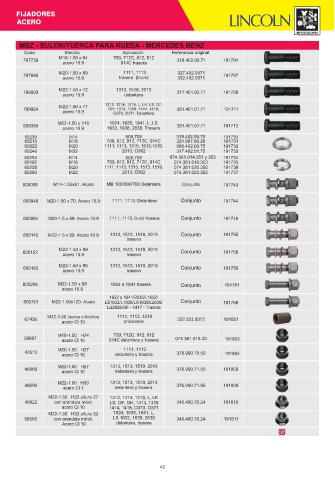 MBZ - BULON/TUERCA PARA RUEDA - MERCEDES BENZ 60239 M14 608,708 319.402.00.75 191730 60253 M14 608,708 074.361.014.351 y 353 191734 42