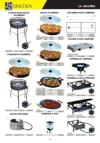 ACF710 63 cm C00501 ACF41 Tapa 45cm C00512 COCINA A GAS CAMPING