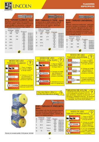 PYC - TARUGO CLÁSICO - Nylon PYT - TARUGO C/ TOPE - Nylon PYU - TARUGO UNIVERSAL