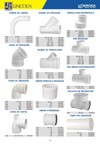 CURVA 90° LARGA RAMAL 45° DESAGÜE REDUCCIÓN EXCÉNTRICA