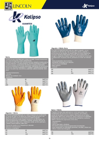 recubrimiento de látex de nitrilo en la palma, dedos y espalda, y